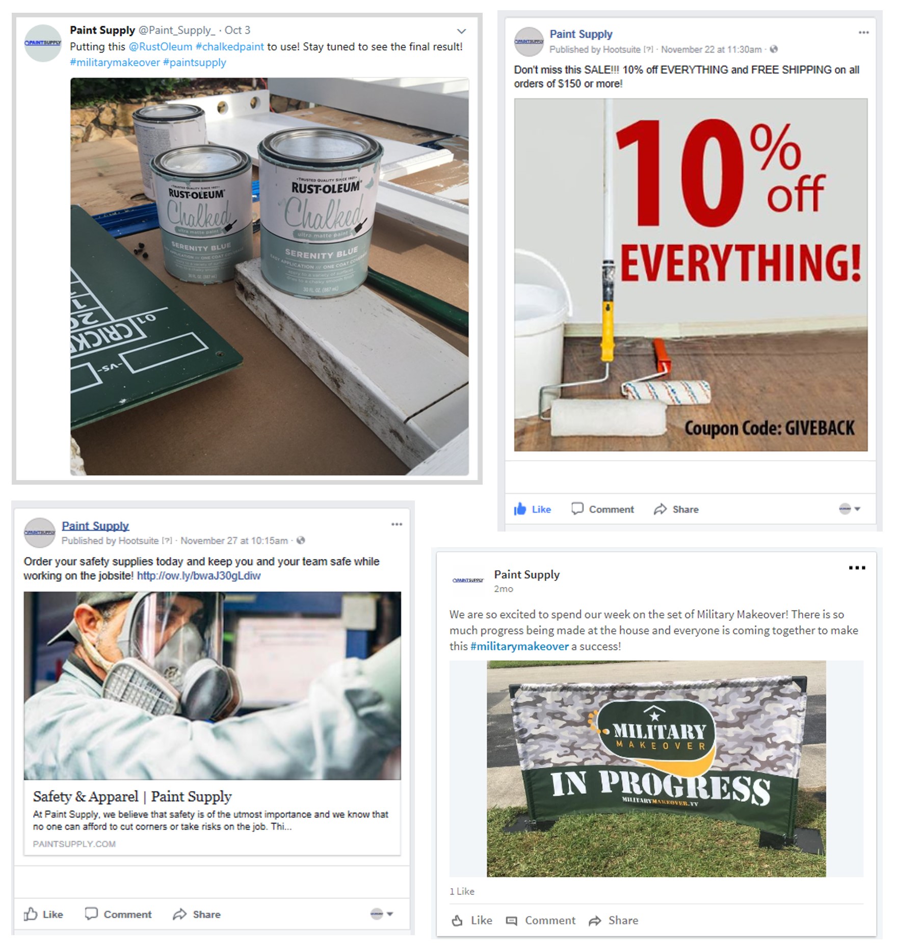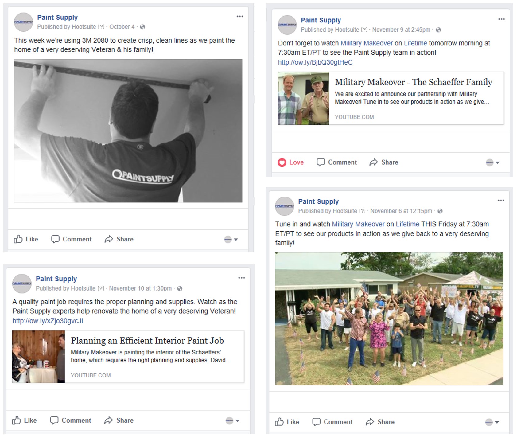 I was able to negotiate a contract with Lifetime Television’s Military Makeover. This partnership allowed Paint Supply to participate as a Brand Partner on the three-part mini-series. This opportunity allowed me to oversee all facets of the project, from initial contract negotiation and overall management of the project, to all social media and promotional efforts surrounding the season.